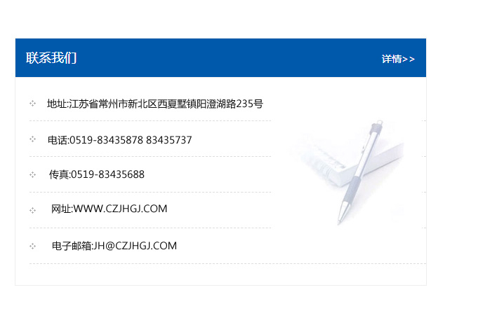 地址:常州市新北區友邦商務大廈1幢16、17層  電話:0519-85101652  傳真:0519-85112595  郵編:213022  網址:www_cz-jiayue_cn.jysauto.com  郵箱:xiajifengaa@163.com